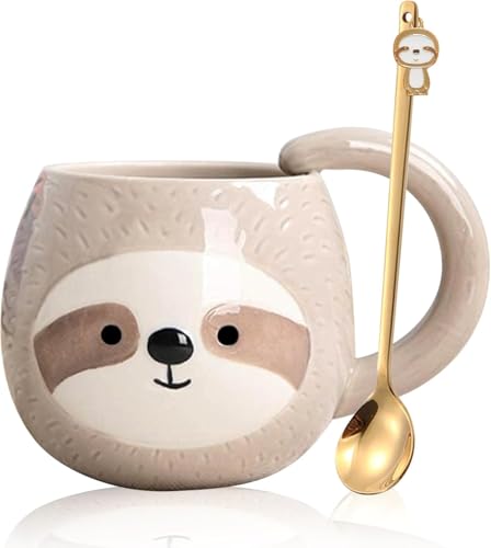Yalucky Fancy sloth kaffemugg, söt rese tekopp, tecknad 3D keramiska glas för sengångarälskare, roliga gåvor för kvinnor och män, 330 ml