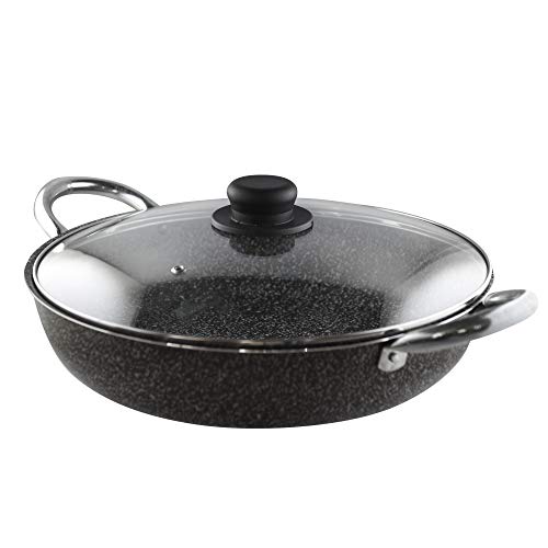 Magefesa Ares kastrull 24 cm med dubbelskikt non-stick beläggning förstärkt med matt svart yttre emalj och satin rostfritt stål hårdvara med platt glas lock