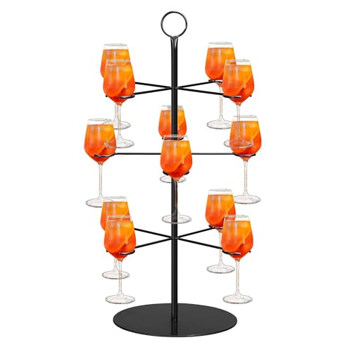 STFALI Cocktailträdstativ i metall 3 våningar 12 glas för bar, hem, dryck, fest champagne tornstativ för gin, aperol, cocktail, martini, champagne, vin