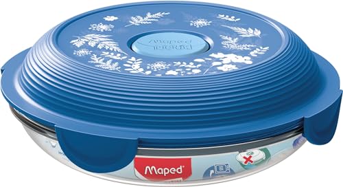 Maped Picnik - lunchtallrik i glas med vattentätt lock - matlåda kompatibel med mikrovågsugn, ugn och diskmaskin - Cyanotyp dekoration, 700 ml