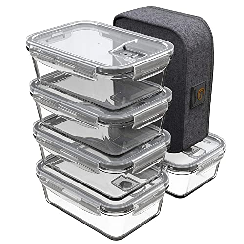 GENICOOK Lunchlåda Bento lunchlåda med matväska/matlåda, matförvaringsburkar glas perfekt för Meal Prep – BPA-fri för hemmakök eller på språng (5 x 840 ml)