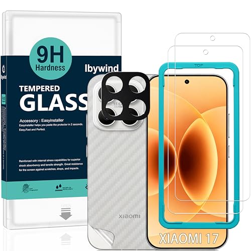 Ibywind Skärmskydd för Xiaomi 17 5G,2-pack Härdat Glas med 9H Hårdhet och Kameralinsskydd,med Installationsram,Fingeravtrycksstöd,Inga bubblor,Reptålig och Krossäker