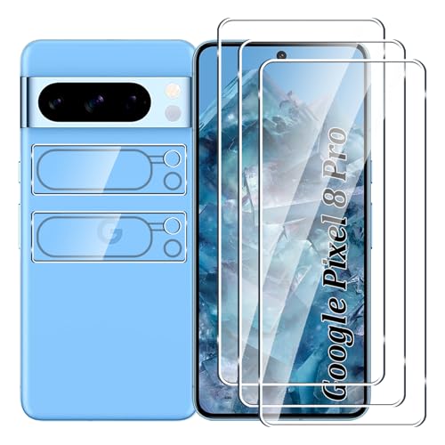 Fyqzio [3+2 stycken] Skärmskydd i härdat glas kompatibelt med Google Pixel 8 Pro och kamera,inga bubblor,9H hårdhet,anti-repa,HD skärmskydd för Google Pixel 8 Pro