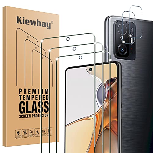 Kiewhay Skärmskydd Kompatibel med Xiaomi 11T 5G / 11T Pro 5G Härdat Glas 6,67'', 3x Härdat Glasfilm +2x Kameralinsskydd, [9H hårdhet] [Inga Bubblor] 99,99% HD Skyddsfolie - 5 Pack