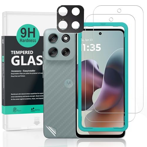 Ibywind för Motorola Moto G56 5G Skärmskydd,2-pack 9H hårdhet härdat glas,med 1Pc skydd för kameralinsen,1Pc kolfiberfilm för baksidan,Inga bubblor,lätt att installera