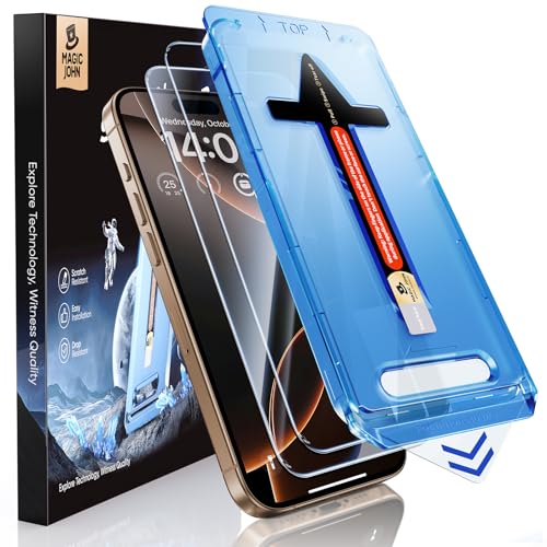 MAGIC JOHN 2-pack för iPhone 16 Pro skärmskydd i härdat glas 6,3 tum, automatisk dammelimineringsinstallation, 9 H + hårdhet härdat glas HD klar, heltäckande skydd, inga bubblor inget damm