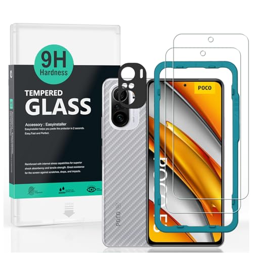 Ibywind 2-pack skärmskydd för Xiaomi Poco F3 5G/Redmi K40/K40 Pro 5G,9H hårdhet härdat glas,med 1Pc skydd för kameralinsen,1Pc kolfiberfilm för baksidan,Inga bubblor,lätt att installera