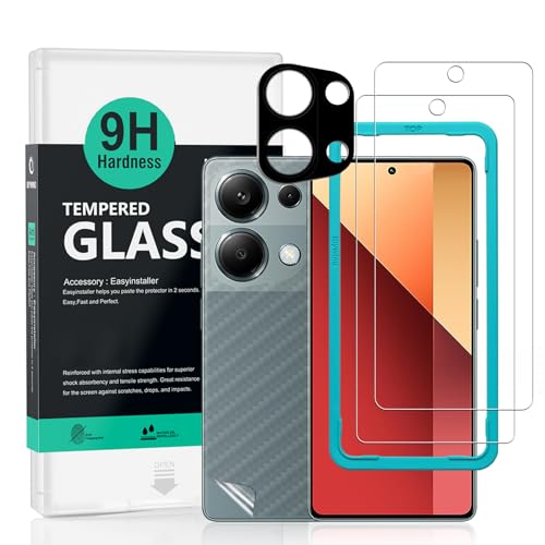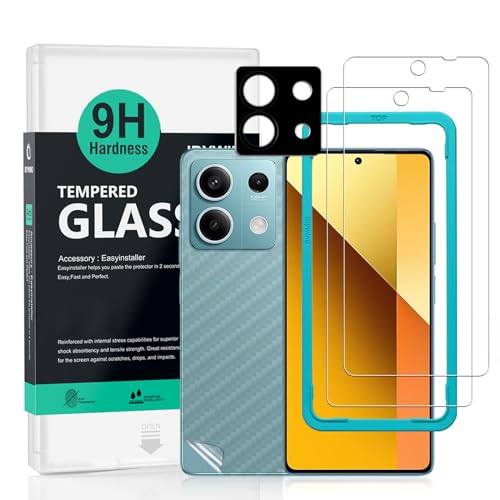 IBYWIND 2-pack skärmskydd för Xiaomi Redmi Note 13 5G 6.67",9H hårdhet härdat glas,med 1Pc skydd för kameralinsen,1Pc kolfiberfilm för baksidan,Inga bubblor,lätt att installera