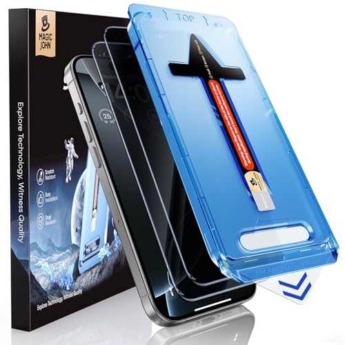 MAGIC JOHN 2-pack för iPhone 16 Pro Max privat skärmskydd i glas 6,7 tum, automatisk dammelimineringsinstallation, 9 H + hårdhet härdat glas HD klar, heltäckande skydd, inga bubblor inget damm