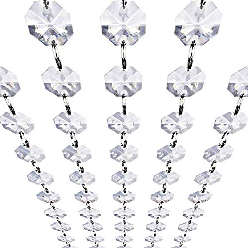 Kristallgirlangsträngar – hängande ljuskrona, pärlkedja – 14 mm klar oktagon, prisma och diamantdekorationer för bröllopsfest Manzanita bordsuppsats julgran (glas, 16 fot)