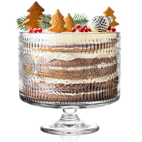 BIMUYI Trifleskål i glas med piedestal, 3250 ml vintage serveringsskål, efterrättsskål med fot för kakor, frukt, sallad