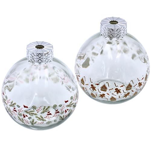 Dekohjälden24 dricksglas, julkula av glas med sugrör som set om 2, transparent med juldekoration, L/B/H 10 x 10 x 20 cm, kapacitet 220 ml