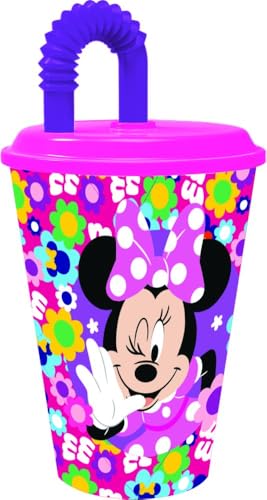 Tataway Minnie Bold Florals 430 ml glas med sugrör: bekväm, säker och dekorerad med en modern, blommig Minnie, perfekt för att göra varje klunk speciell