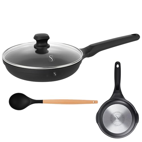 Stone&Stone & Non-stick sten stekpannor, Induktions botten, professionell kock stekpanna, stålbotten för en energibesparing på 50 härdat glas lock i gåva (FULL INDUCTION, 24)