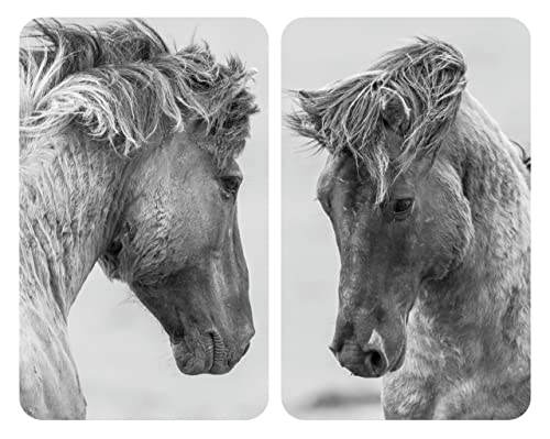 WENKO stekpanna Universal Horses – set av 2, köksbordsskiva och glasskärbräda för alla typer av spisar, härdat glas, 30 x 2–6 x 52 cm, flera färger