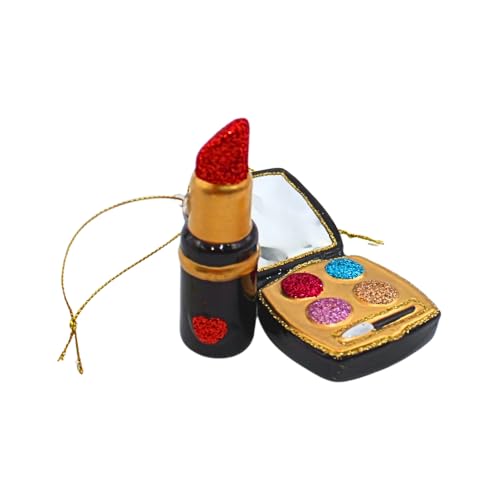 Dekorhjälten24 Lauschaer julgranspynter – uppsättning av 2 julgranskulor, buller, glasbollar, julgranskulor, glasornament make-up, glashänga, läppstift i färgglad, av bullera, L/B/H 4 x 1 x 12 cm.