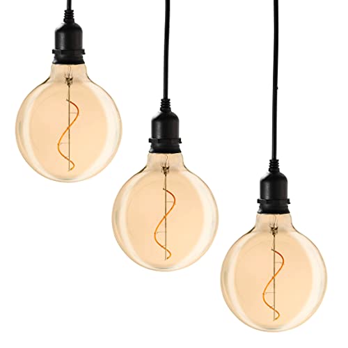 Uppsättning av 3 glasbollar glow guld med nätkontakt