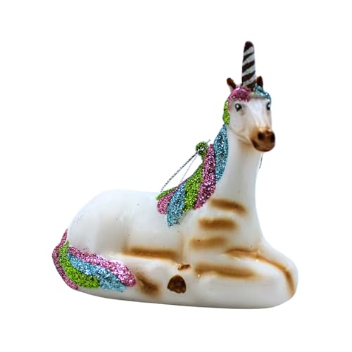 Dekorhjälte24 Lauschaer julgransprydnad – julgranskulor lauscha, glasbollar, glasornament enhörning, glasgardin som enhörning i vitt med färgglad man, gjord av lauscha, L/B/H 10 x 5 x 9 cm.
