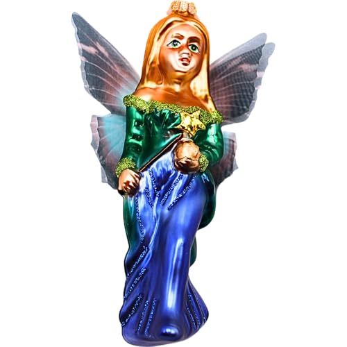 Dekorhjälte24 Lauschaer julgranspynt – julgranskula bullerus, glasbollar, julgranskula, glasprydnad älva i blå/grön, gjord av lauscha, L/B/H 4 x 4 x 15 cm.