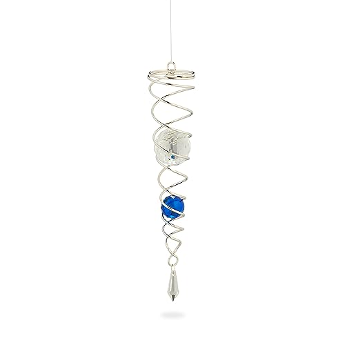 Relaxdays Vindspel med glasbollar, metall, hängande dekoration för inomhus och utomhus, H x D: 46 x 5 cm, solfångare, silver/blå