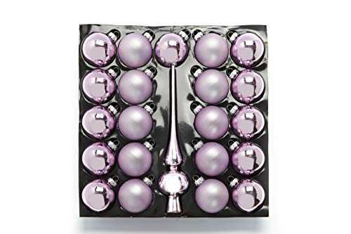 Heitmann Deco Set med 21 glasbollar + trädspets – julgransprydnad för upphängning – julgranskulor – rosa