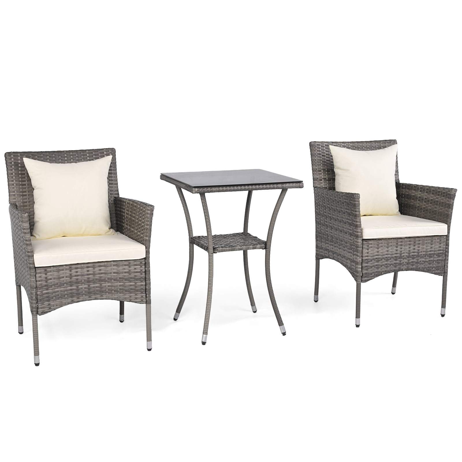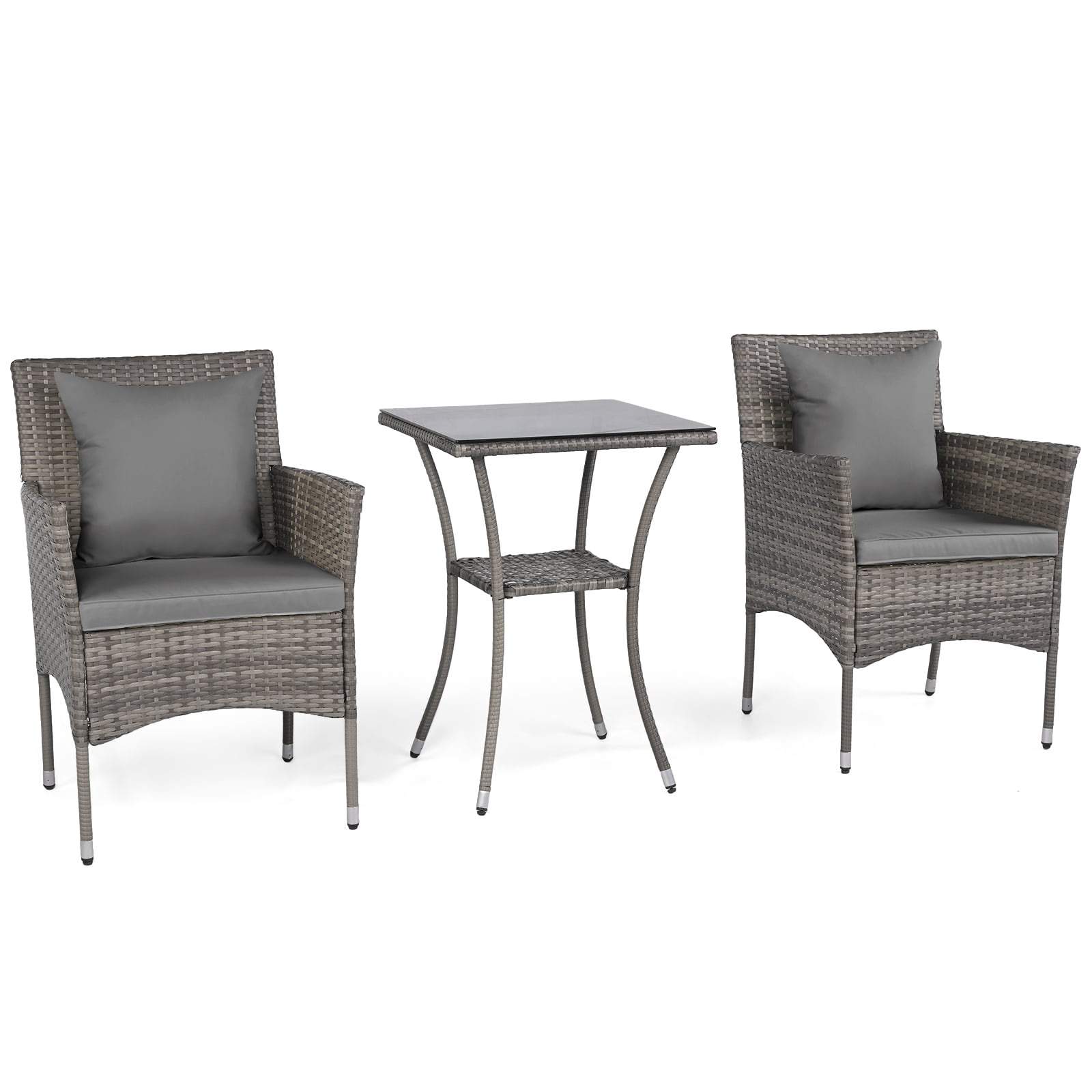 Uteplatsset – 2 rottingstolar och glasbord, grå