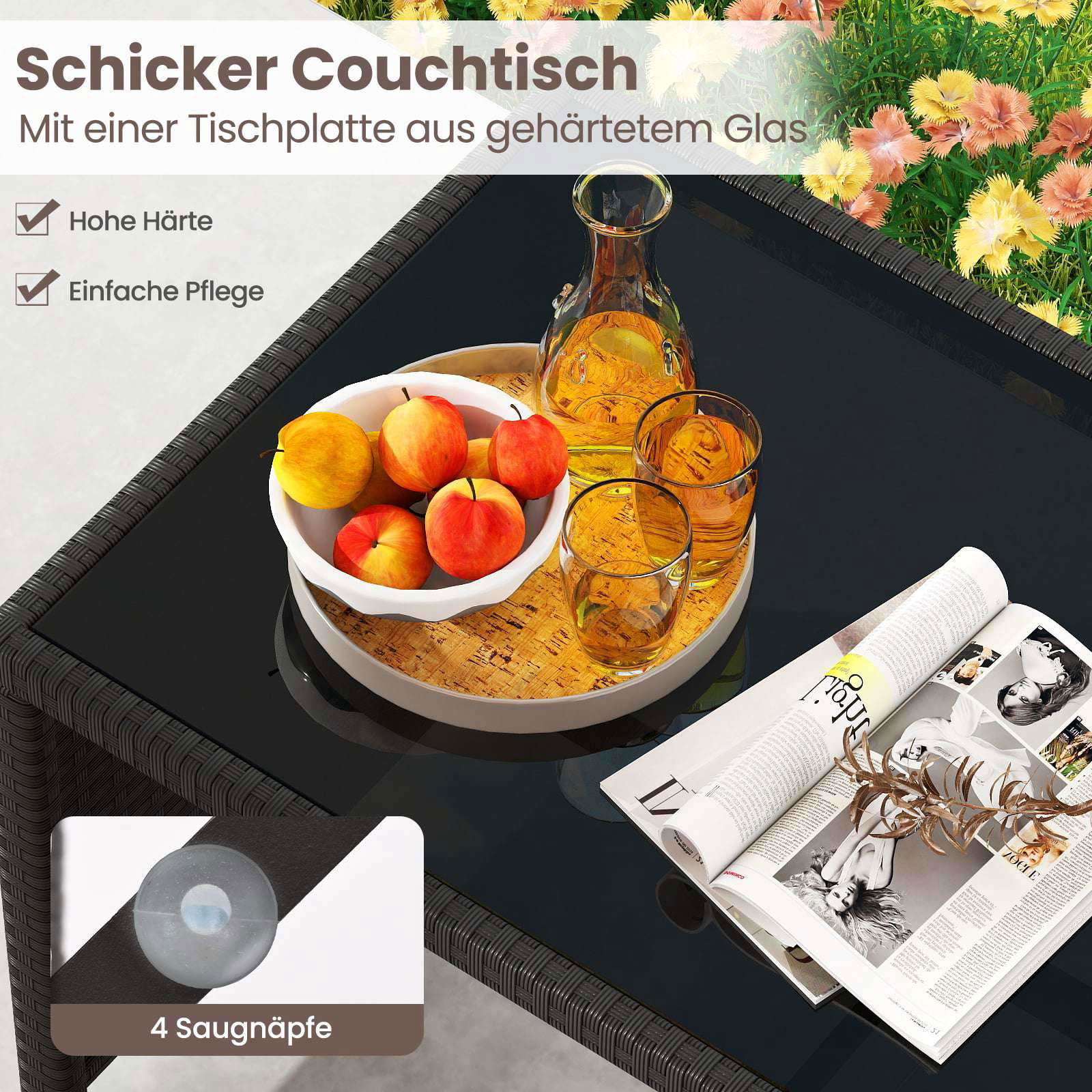 Uteplatsbord Rektangulärt soffbord med bordsskiva Bistrobord Trädgårdsbord Glasbord Svart