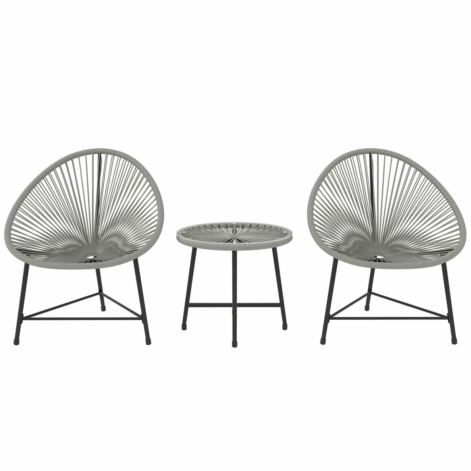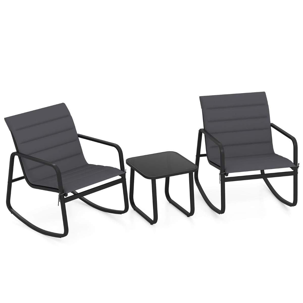 Utomhusbäddsset med gungstol – 2 stolar och glasbord, grå