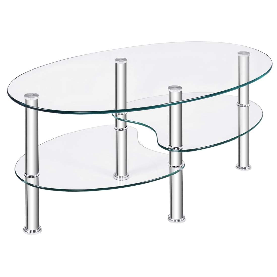 3-vånings glasbord med modern oval design, genomskinlig trevåningshylla