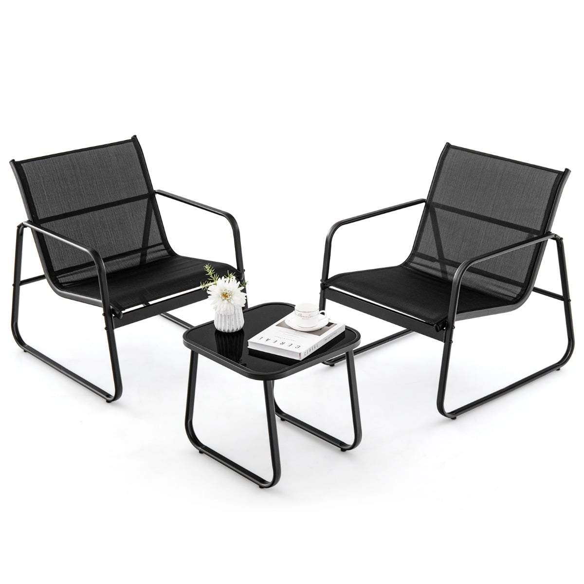 3-delat bistroset av metall, väderbeständig trädgårdsmöbelset med fällbart glasbord, trädgårdsstolar, utebalkongmöbelset, sittgr