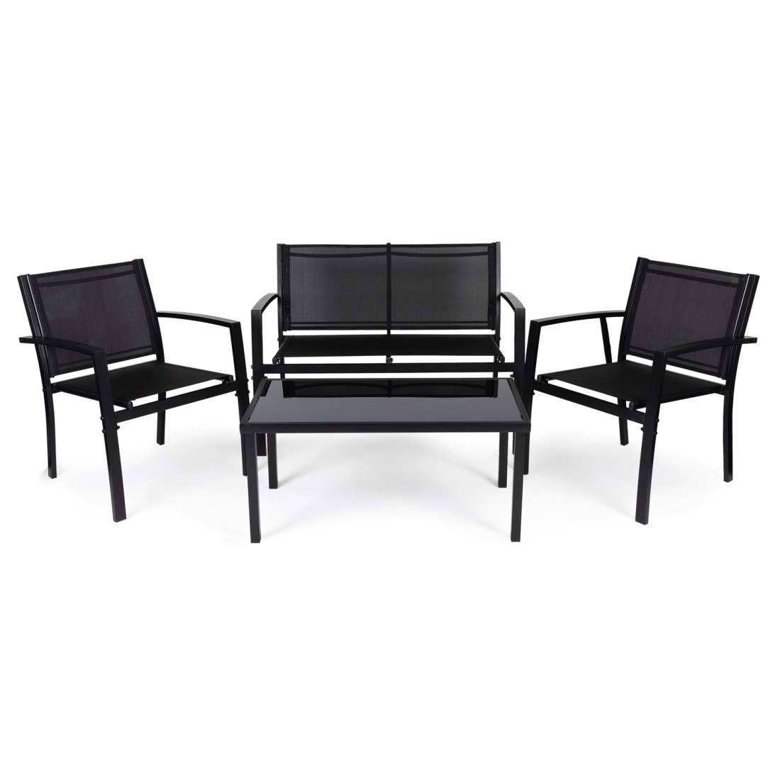 3-delat utomhusset – Andningsbara stolar och glasbord