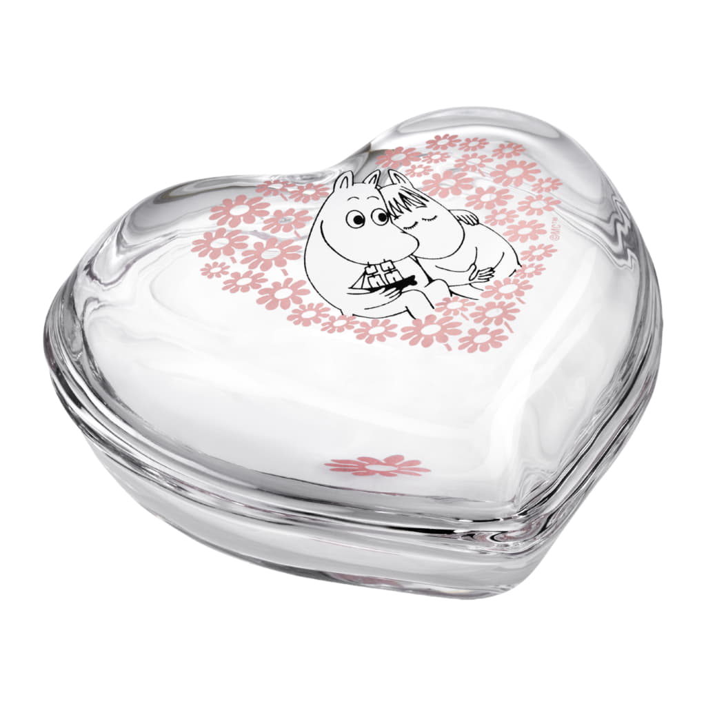Mumin Hjärtformad Glasburk med Lock, Tillsammans