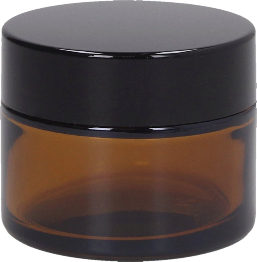 (6-pack) 50 ml bred mun ultraviolett glasburk med svart skruvlock – lufttät | luktsäker | läckagesäker | UV-förvaringsbehållare | påfyllningsbar behållare