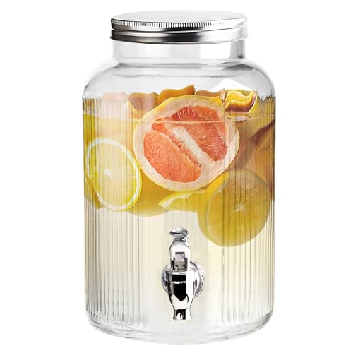 The Vintage Company 51059 glasburk dryckesdispenser med kran/5,5 liter kapacitet/säkert skruvlock/bred flaskhals/retro glasdesign/perfekt för vatten, juice, cocktails och mer