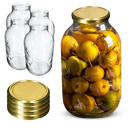 KADAX Alarm burkar 5 l, glasburk för insättning, konserveringsburkar för skruvlock, fallglas, syltglas, förvaringsglas, glasburk, runda glas (guld, 4 stycken)