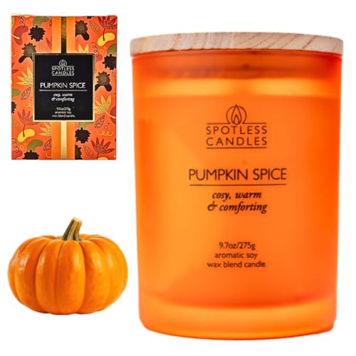 Pumpa kryddljus – 275 g / 9,7 oz pumpa ljus i orange frostad glasburk med trälock och knastrande veke i lyxig presentask – mysig, varm och tröstande