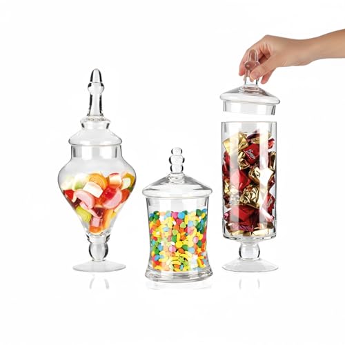 AVILIA Set med 3 genomskinliga glasburkar med lock – matbehållare 700 ml, 800 ml, 1 000 ml – Elegant kakform för kök och buffé – perfekt för godis, snacks, pasta och spannmål