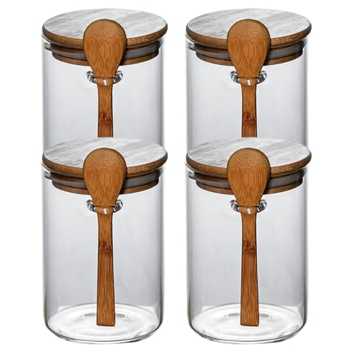 4 st glasburkar med lufttätt lock, 600 ml genomskinliga glasburkar med sked, återanvändbar bred munburk för kryddning havre mellanmål yoghurt krydda socker