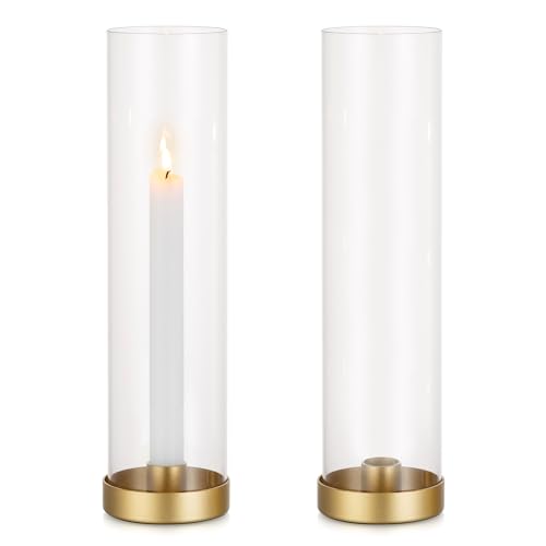NUPTIO Hurricane Ljusstake I Glas: Ljusstake I Guld Med Hög Taperljusstake Glascylinder - Uppsättning Med 2 Bröllopsdekorationer för Bord Öppen Spis Och Matbord
