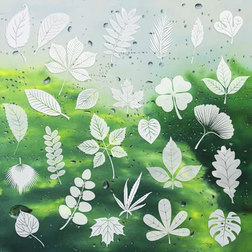 26 stycken ark fönsterklistermärken fågelskydd dubbelsidig vita blad klistermärken varningsklistermärken statisk laddning återanvändbar glasdekoration för att förhindra fågelstötar för dörrfönster