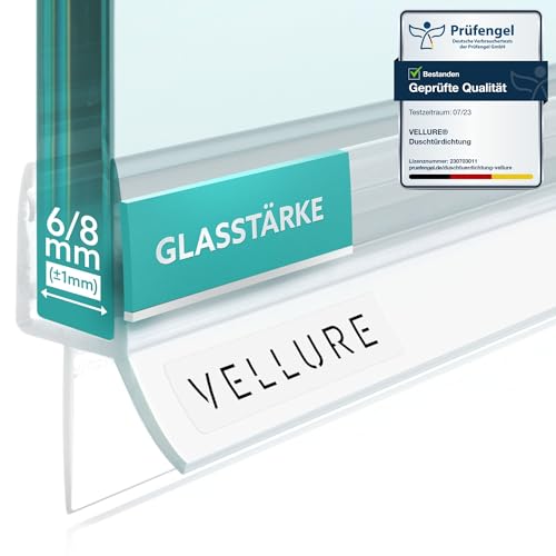 Vellure® Duschtätning - ny premiumtätning av dusch glasdörr - hållbar duschdörrstätning nertill, gummiläpp för duschdörrar (1 x för glastjocklek 6 mm - universell längd upp till 100 cm)
