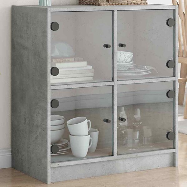 vidaXL Sidoskåp med glasdörrar betonggrå 68x37x68,5 cm 836493