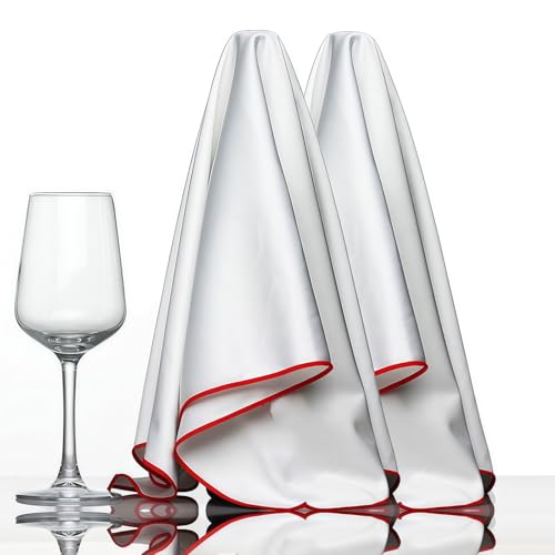 Kiuiom Poleringsduk för vinglas, professionell glasduk utan ränder, poleringsdukar för rengöring av glas och blanka ytor, återanvändbara, vita och vinröda, 2 delar, 40 x 60 cm