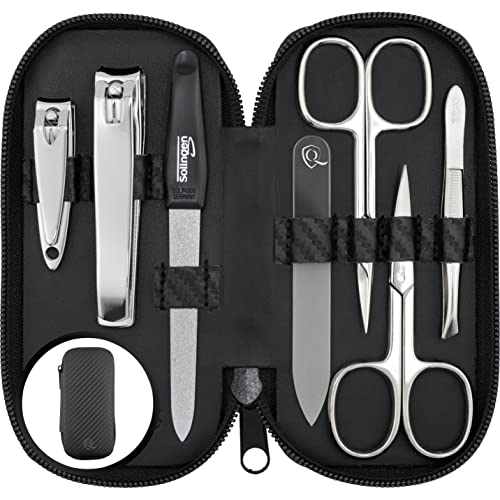 marQus manikyrset för damer och herrar Solingen Tillverkat i Tyskland 7 delar med patenterad glasfil för hand- och fotvård - läderimitationsfodral med karbonlook