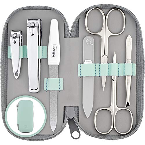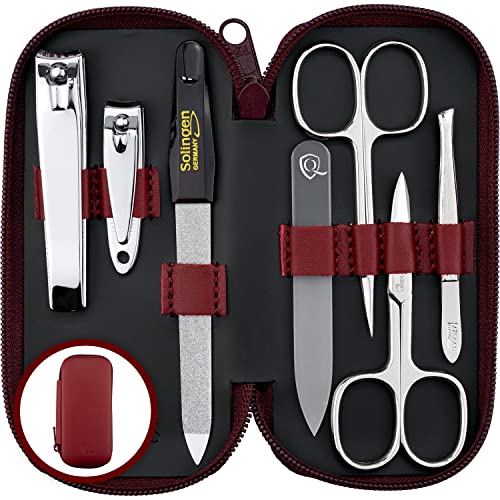 marQus manikyrset för damer och herrar Solingen Tillverkad i Tyskland 7 delar med patenterad glasfil för hand- och fotvård - fodral i äkta läder praktiskt och mjukt