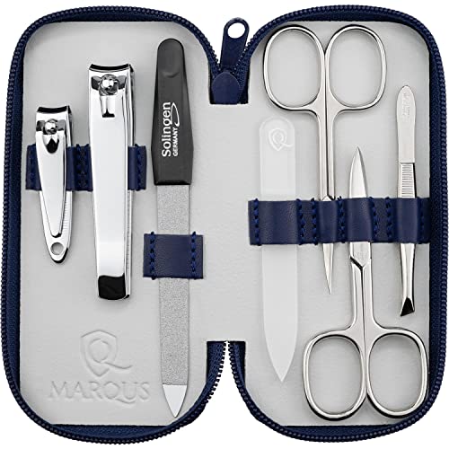 marQus manikyrset för damer och herrar Solingen Made in Germany 7 delar med patenterad glasfil för hand- och fotvård - fodral i äkta läder praktiskt och mjukt, 1 del