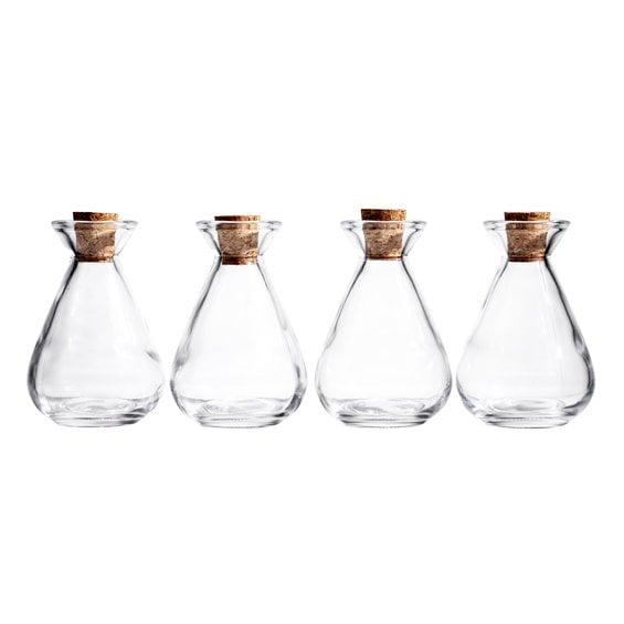 Glasflaskor med kork 4-pack, höjd 10,5 cm, Ø7 cm, rymmer 150 ml