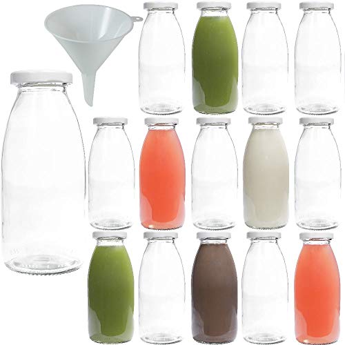 Viva Haushaltswaren 15 mini/mjölkflaskor 250 ml glasflaskor med vita skruvtoppar för självfyllning med fyllningstrattdiameter 12 cm