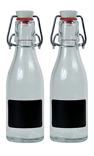 Viva Haushaltswaren - 2 st. små glasflaskor 200 ml tom med hänglås av porslin för fyllning, kan användas som en transparent juiceflaska och oljeflaska (inklusive 2 märkningsetiketter)