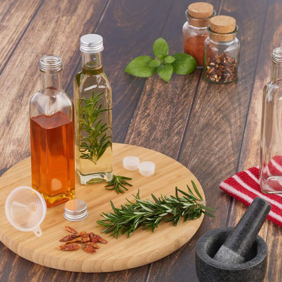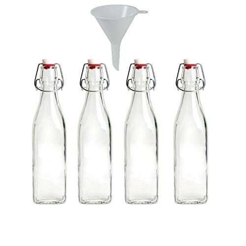 Viva Haushaltswaren – 4 små glasflaskor med klämstängning, 250 ml (fyrkantig form) för självfyllning. Inkluderar tratt